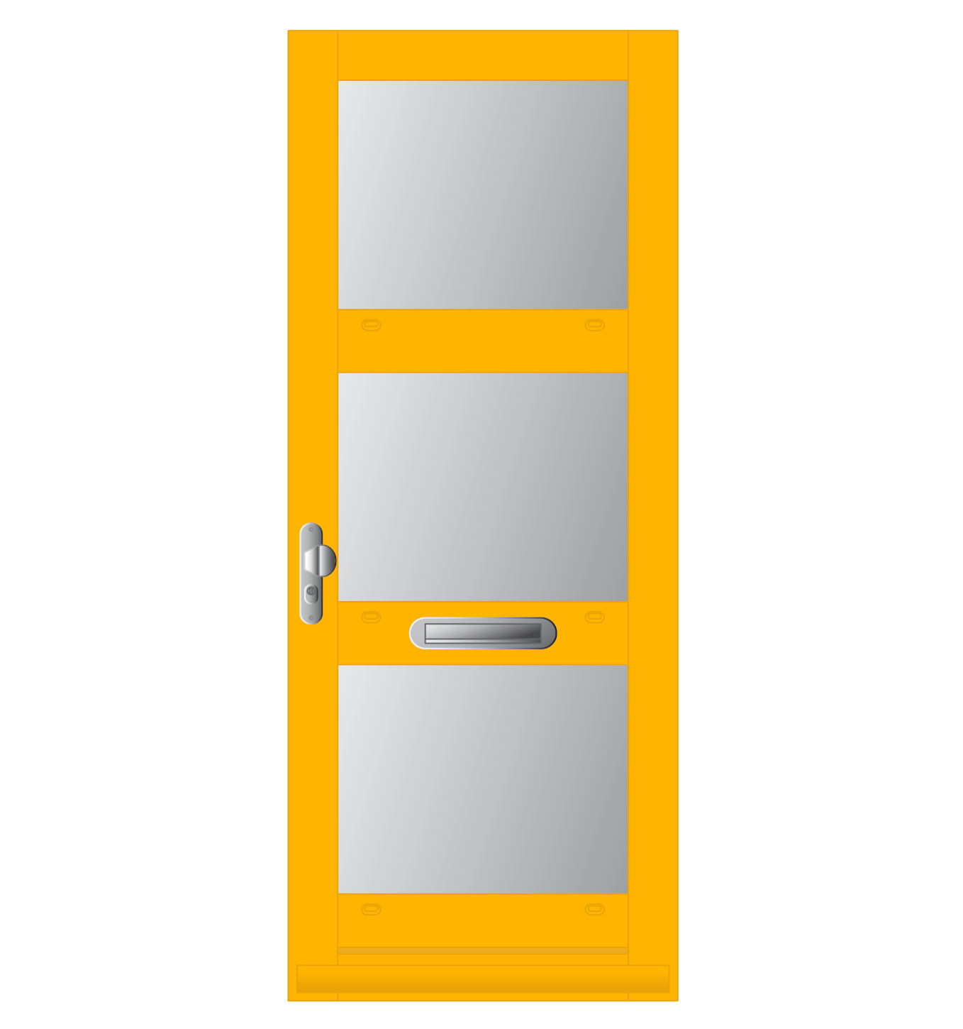 Voordeur. Massief hardhout in FSC® of NON-FSC®. Leveringen onder KOMO keurmerk, PKVW keurmerk en 6 jaar garantie. De deuren kunnen optioneel voorzien worden van een weldorpel. Afwerking: voor- of aflak in een RAL kleur.