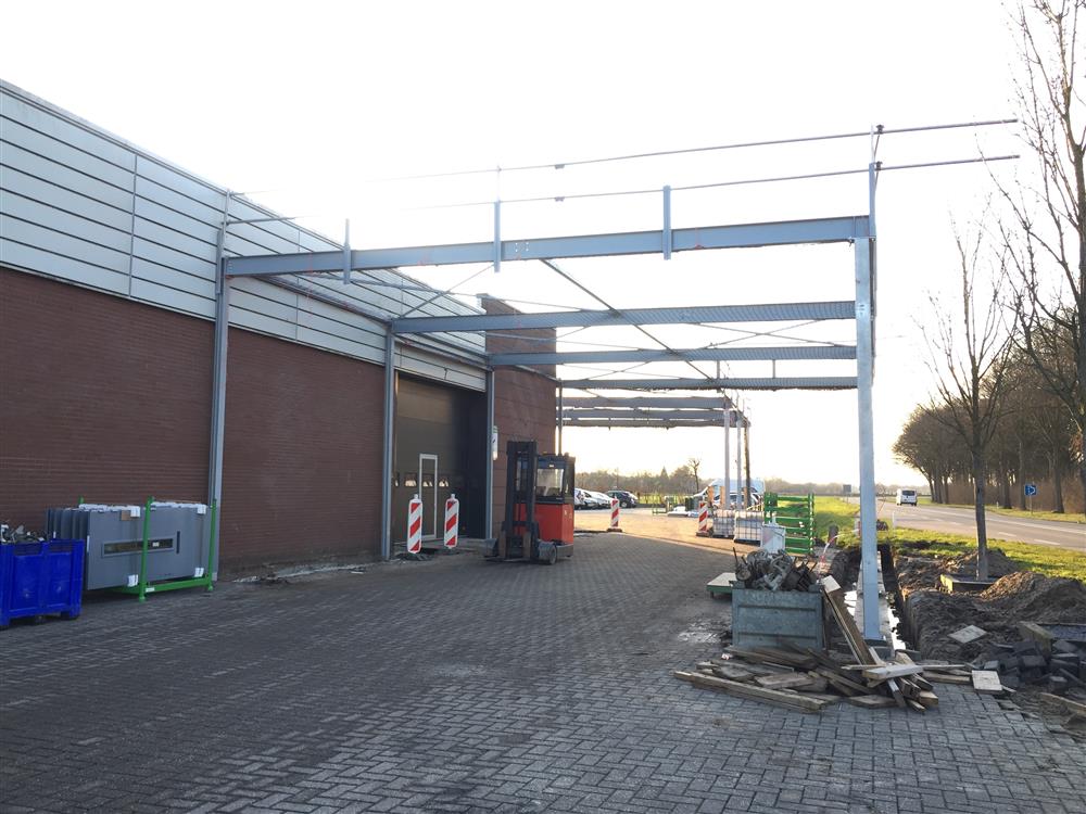 aan de nieuwe overkapping, zodat wij straks onze deuren en materialen droog kunnen laden en lossen.